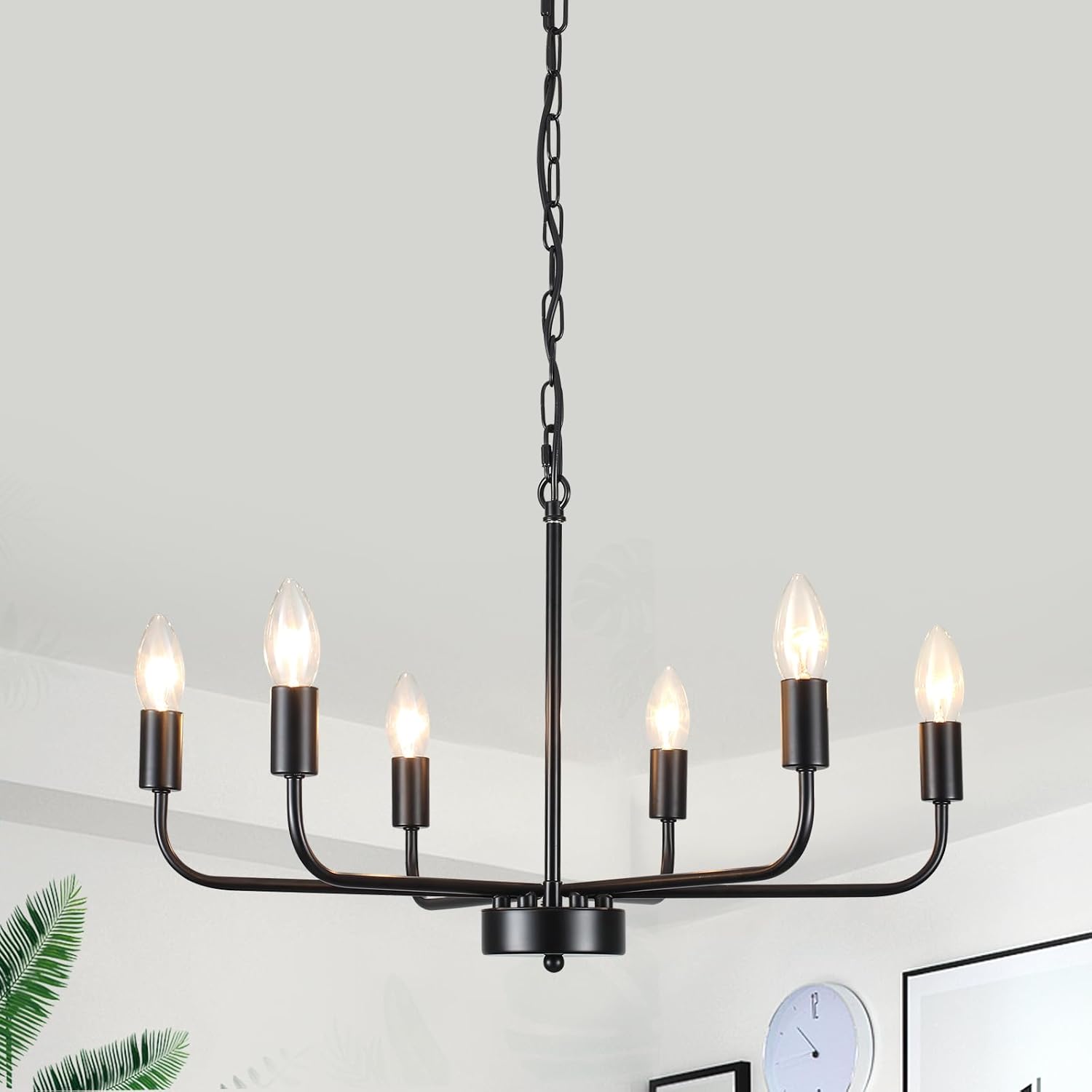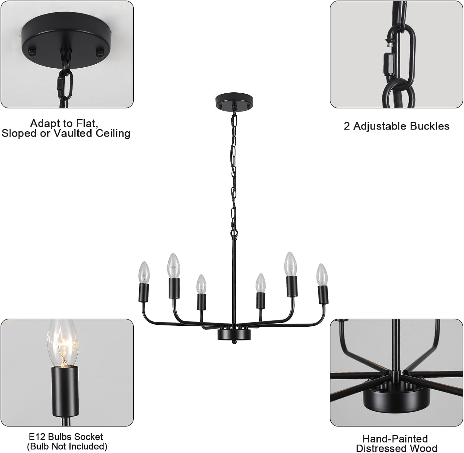 - 【Ul Listed & Bulb Requirement】: The black chandeliers for dining room requires 6×E12 candelabra bulbs maximum 60W. It can be used with compatible dimmer switches (🔔Bulbs/Dimmer Switch NOT Included).